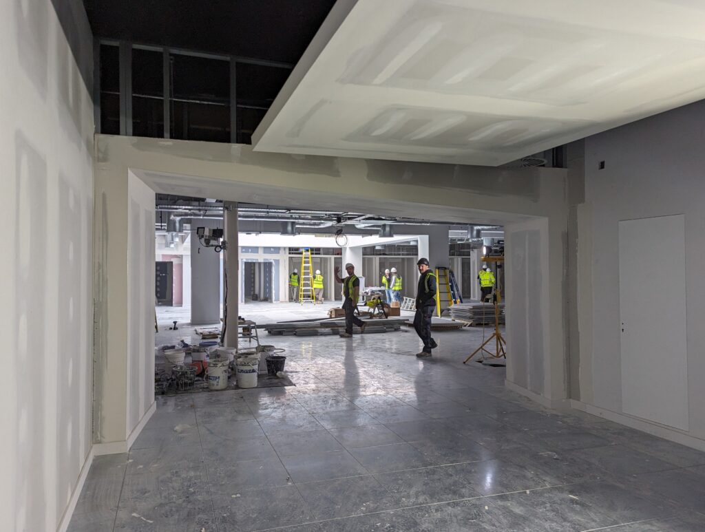 The office fitout for Sumo Group is running smoothly on site. After completing the setting out of partitions and feature walls, other finishes are slowly appearing on site before the arrival of the large joinery items and feature staircase to connect the floors in the atrium space. MDG are very pleased to see the great progress and are excited to see the design being implemented by McCarthys coming to life.