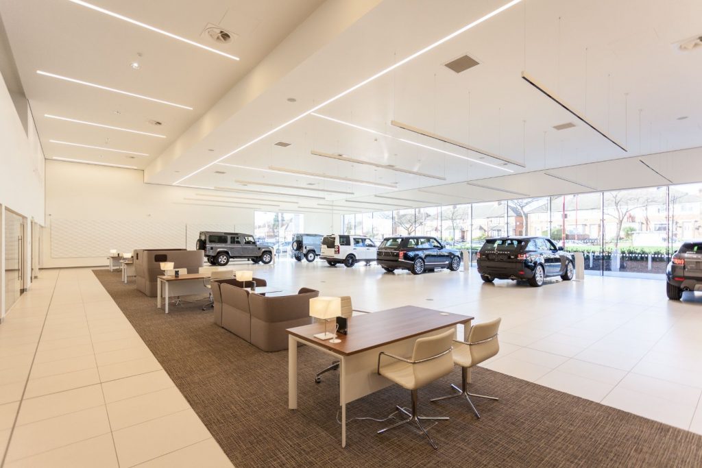 One of the first Land Rover dealership in the UK to adopt the new ARCH C.I. The building boasts a 10 car showroom, drive-through service facility, workshop and multi-storey car deck.