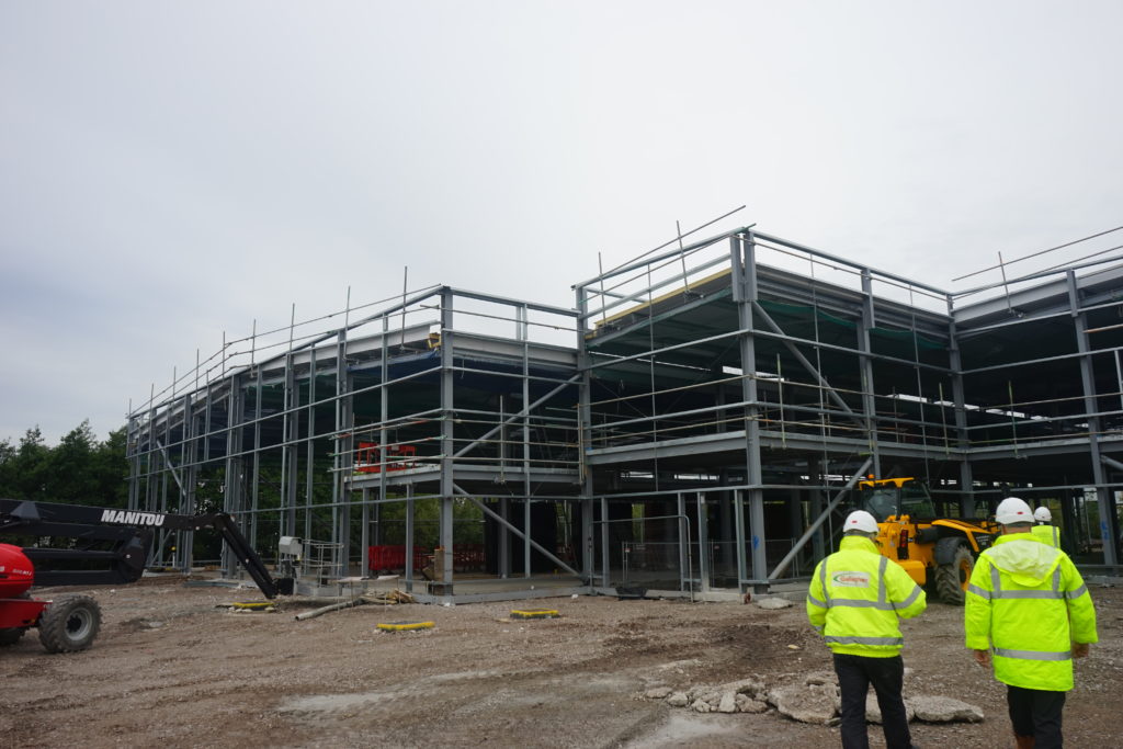Work is continuing at pace on the new £5m Land Rover dealership for the Rybrook Group at Stanley Matthews Way, Trentham, Stoke-on-Trent. The steelwork frame has now largely been erected and the ground floor slab has been cast.