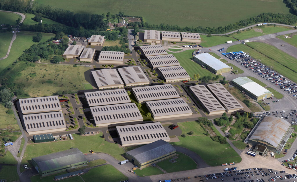MDG Architects have completed planning proposals on behalf of Pinnacle, for 21 new sustainable modular-designed distribution units (Use class B8), at Throckmorton Industrial Park, Pershore. The application site, which is split over two phases, measures almost 40 acres (161,873m2). The units have been designed so they can be relocated in the future, so that the wider long term masterplan for the Pershore Airfield site can be realised, provide a fully sustainable and recyclable solutions.