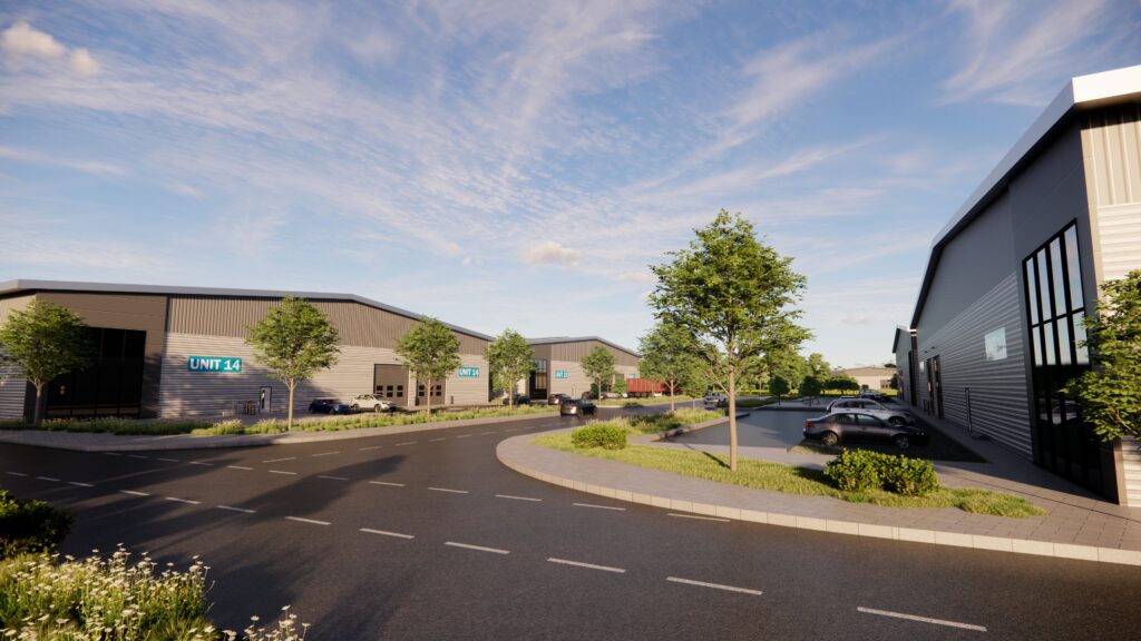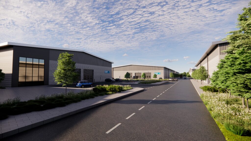 MDG Architects have completed planning proposals on behalf of Pinnacle, for 21 new sustainable modular-designed distribution units (Use class B8), at Throckmorton Industrial Park, Pershore. The application site, which is split over two phases, measures almost 40 acres (161,873m2). The proposals provide flexible unit options ranging from 13,500sqft (1,250m2) up to 134,500sqft (12500m2), with optional additional 75% mezzanine capacity, offices and flexible dock leveller options. The units have been designed so they can be relocated in the future, so that the wider long term masterplan for the Pershore Airfield site can be realised, provide a fully sustainable and recyclable solutions.